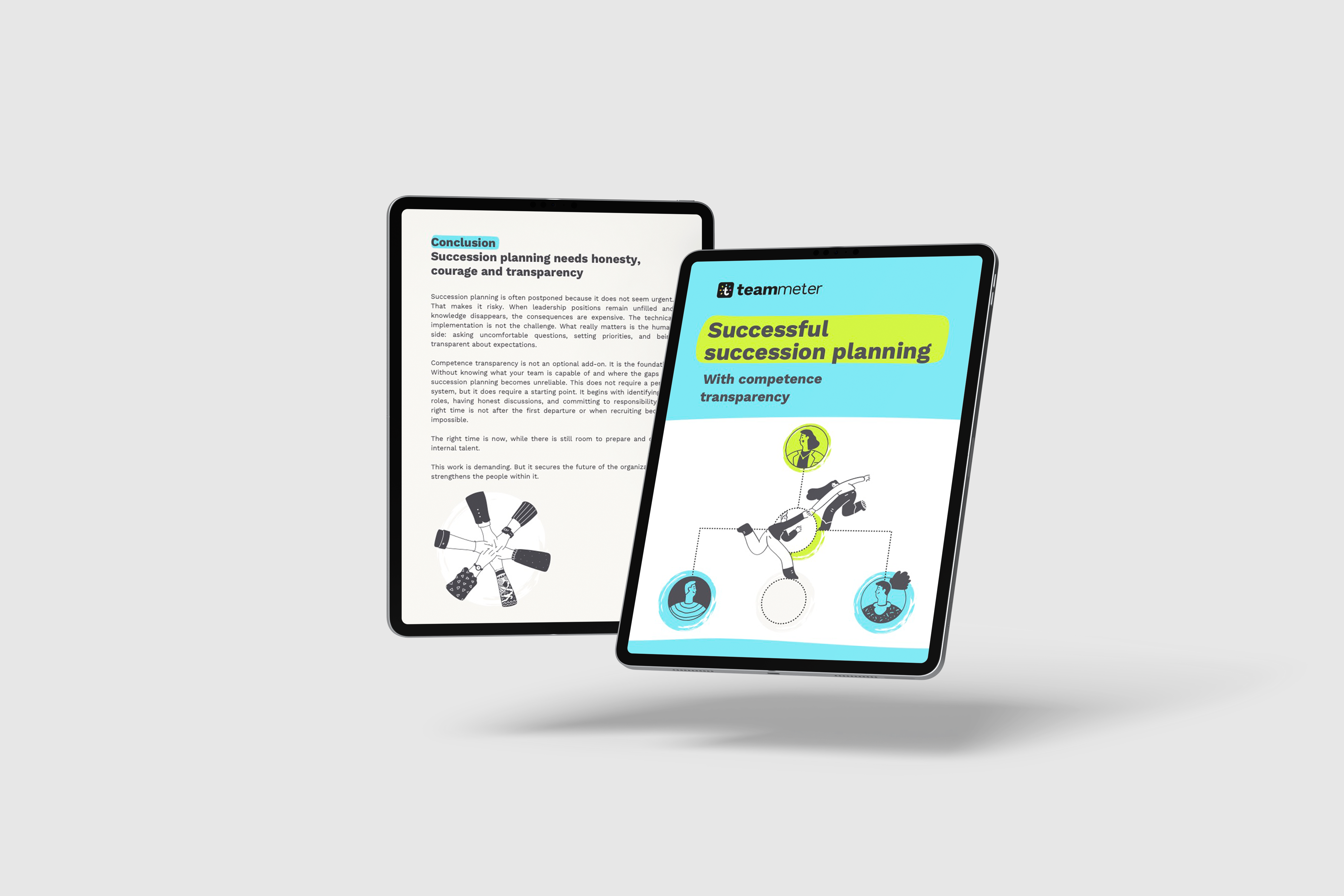 Chez Teammeter, nous travaillons en partenariat avec des équipes RH à travers l'Europe pour rendre la succession, le suivi des compétences et le développement des personnes plus fiables et plus humains. Notre plateforme apporte la clarté dont les organisations ont besoin pour comprendre qui est prêt, qui peut se développer et où se situent les risques futurs. Ce guide fait partie de notre mission : aider les équipes RH à passer d'une planification réactive à une planification stratégique des successions.